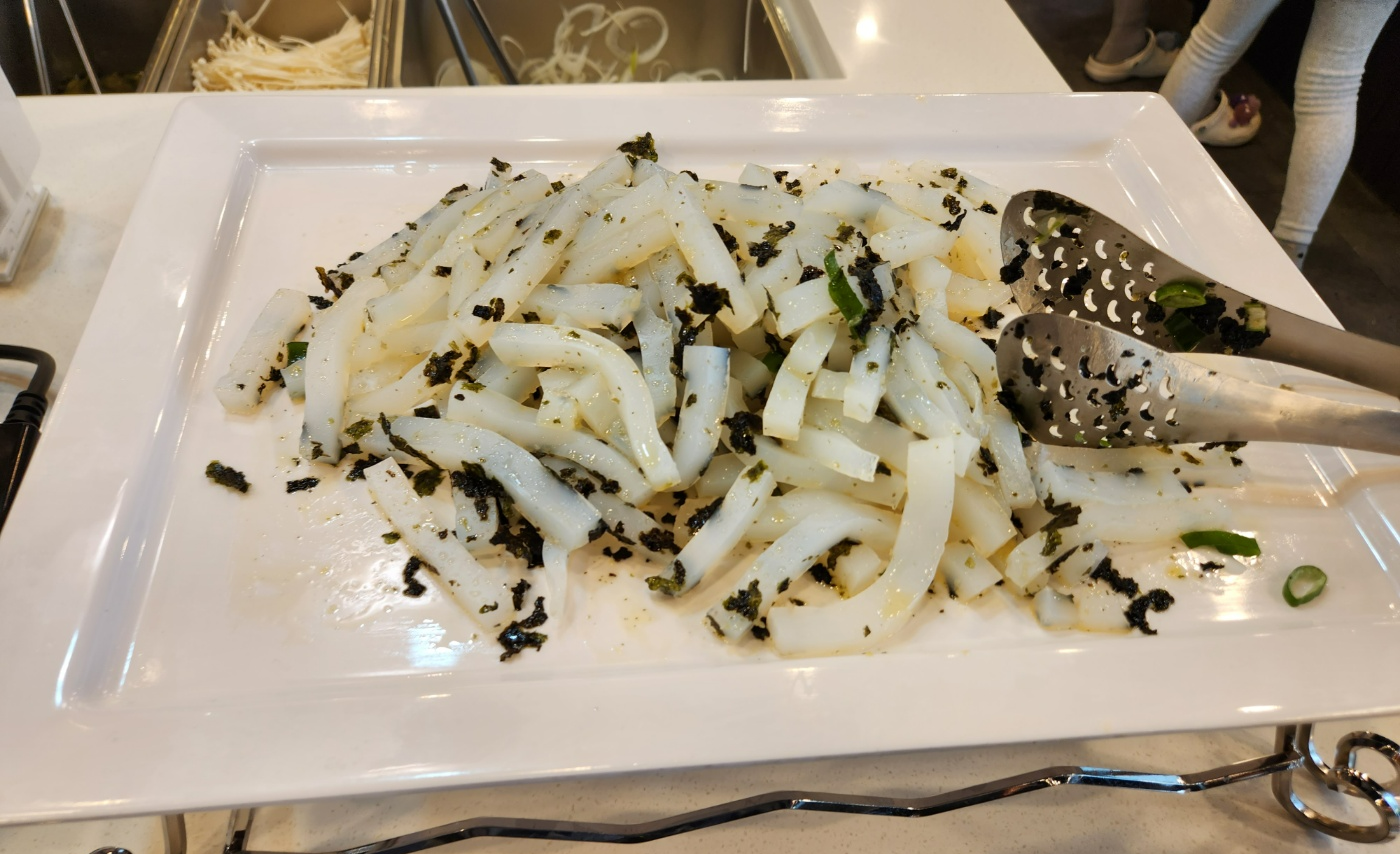 셀프바 맞은편에는 이렇게 떡볶이와 잡채가 있어요.