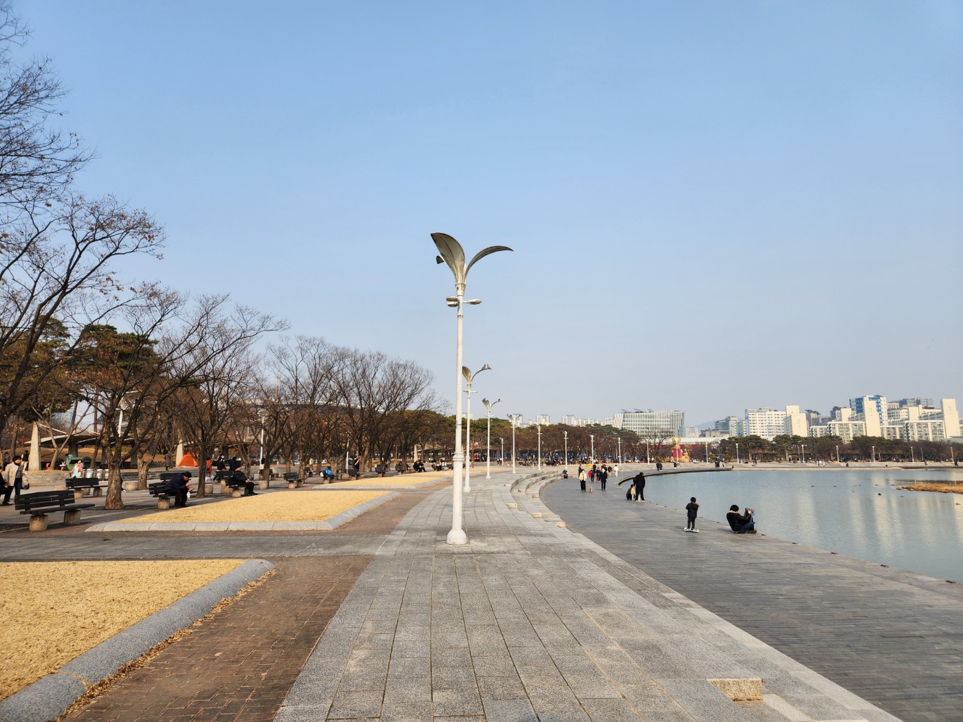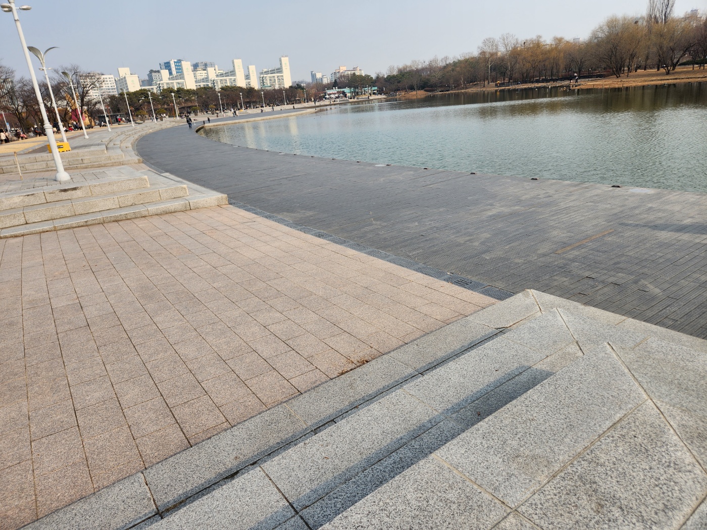 하나 아쉬운 건.. 제가 찍은 사진이 좀 우중충하다는 것ㅠㅠㅠ 아직은 봄이 오기 전이라..ㅠㅠ 이곳은 사실 꽃이 활짝 피는 봄과 초록초록한 잎들이 우거지는 여름에 경치가 절정으로 아름다워요. 또 호수 너머 반대편에는 저렇게 숲길이 있어서 산책하기도 좋답니다.