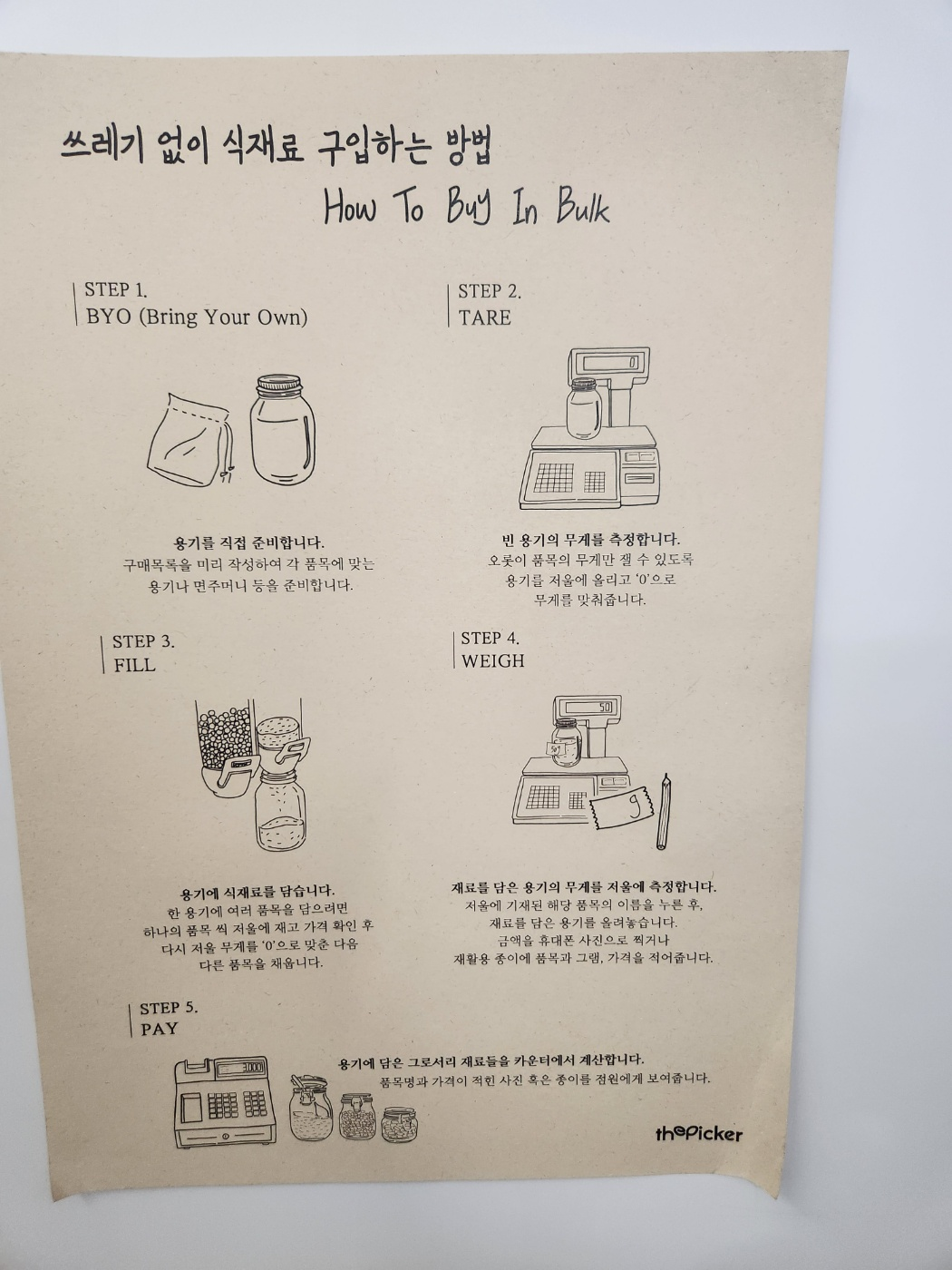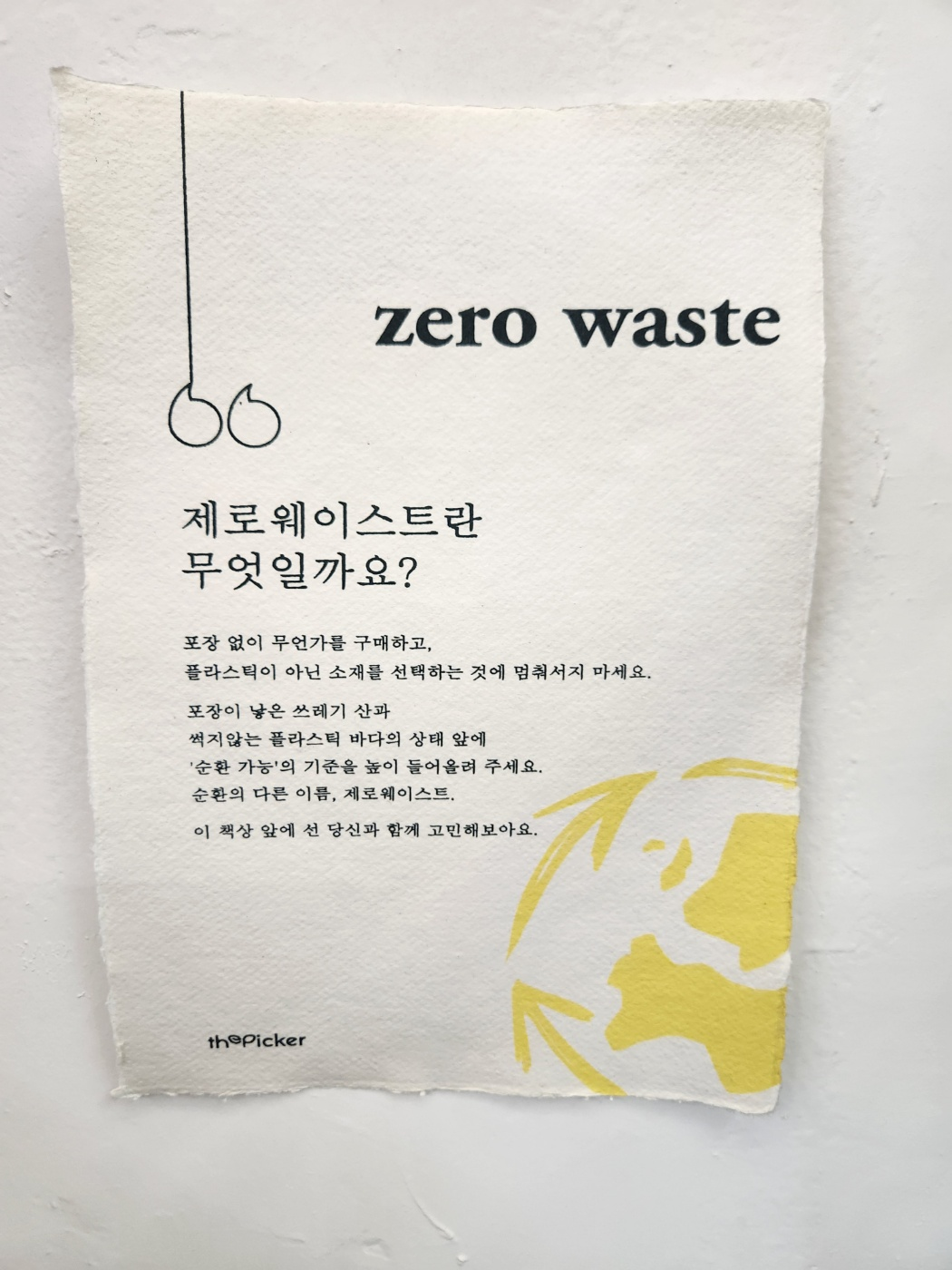 더피커에도 제로웨이스트의 의미가 담긴 팜플렛이 벽에 붙어있어요^^